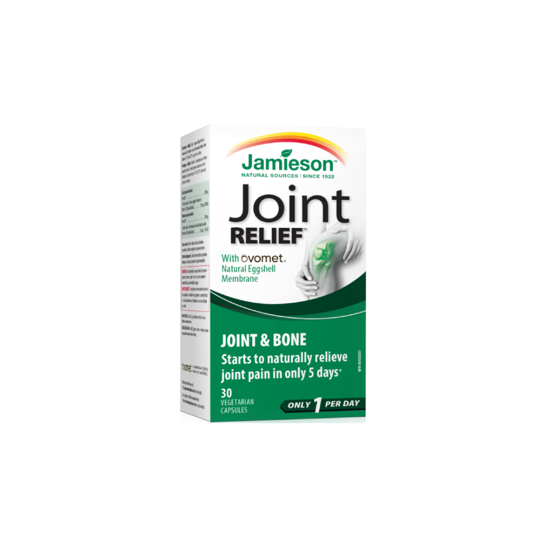 Jamieson Joint RELIEF kapsule vsebujejo 300 mg klinično testirane in patentirane naravne membrane jajčne lupine kokoši Gallus Gallus (Ovomet®) in 1000 i.e. vitamina D3. Podpora sklepom in kostem z le eno kapsulo na dan.