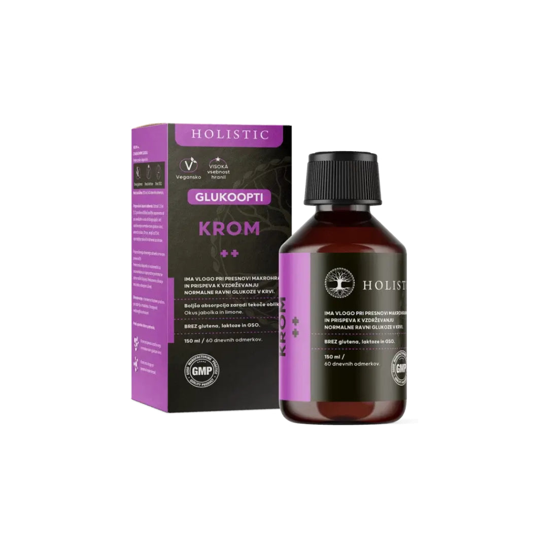 - Krom ima vlogo pri presnovi makrohranil ter prispeva k vzdrževanju normalne ravni glukoze v krvi.
