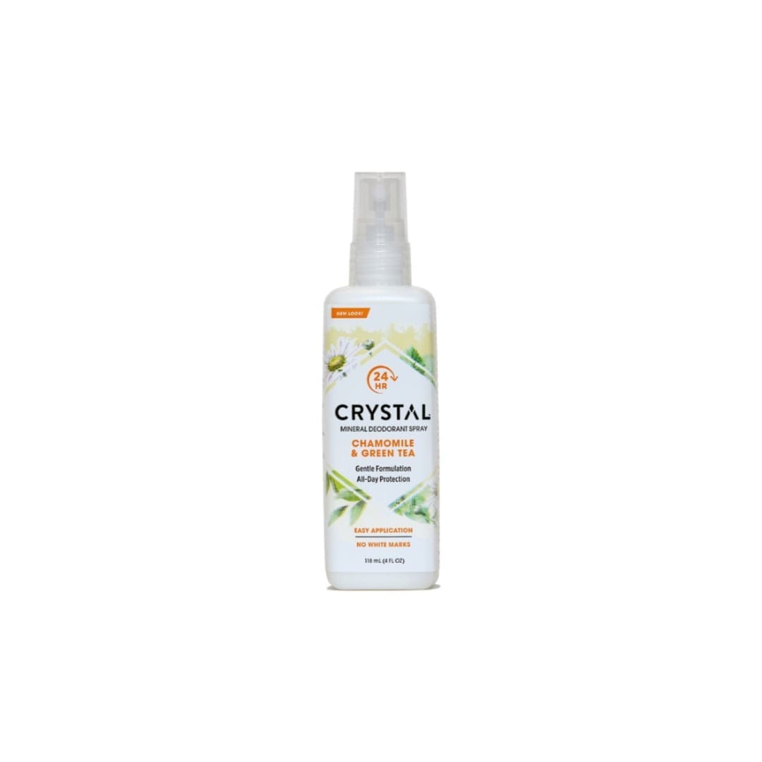 Crystal DeodorantTM KAMILICA in ZELENI ČAJ, vsebuje naravne mineralne soli ter navdaja z vabljivo naravno aromo kamilice in zelenega čaja. Preprečuje nastanek neprijetnega vonja, ki ga povzročijo bakterije pri razgradnji potu na površini kože. Prijetno osveži in ne preobremeni čutil.
