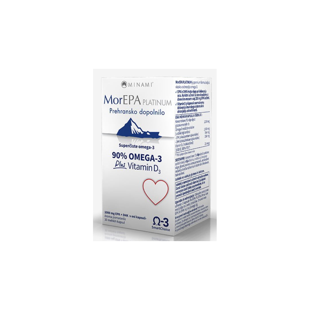 Minamijeva najvišja koncentracija omega-3 s 764 mg EPK, 236 mg DHK in 1000 IE vitamina D3 v obliki holekalciferola v eni sami kapsuli.