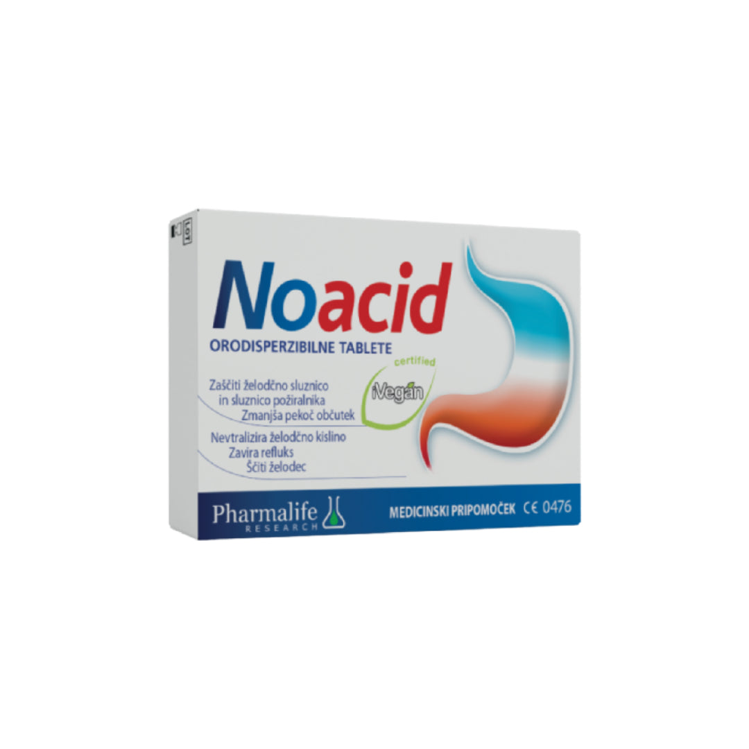 Noacid orodisperzibilne tablete je medicinski pripomoček z mehanskim delovanjem. Uporablja se za nevtralizacijo občutka povečane kislosti, pekočega občutka in bolečine v želodcu, ki nastanejo zaradi razdražene želodčne sluznice. Namenjen je odpravljanju gastroezofagealnega refluksa, saj zmanjša simptome kot so kisli refluks, zgaga, refluks želodčne vsebine zaradi slabe prebave, refluksni ezofa-gitis, kašelj, hripavost, in zmanjšuje težave katerih glavni ali stranski vzrok je želodčni refluks.