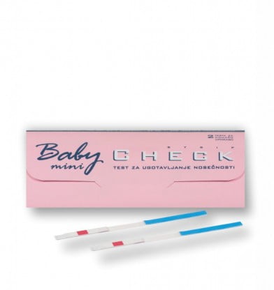 Baby Check Mini je hitri test za ugotavljanje nosečnosti za domačo uporabo.