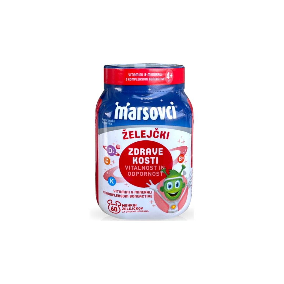 Marsovci želejčki s kompleksom BoneActive, so okusni želejčki v obliki marsovcev. Vsebujejo vitamine in cink za zdravje in dobro počutje organizma. Poleg tega vsebujejo kompleks BoneActive, sestavljen iz vitaminov D in K, ki prispevata k ohranjanju zdravih kosti. Vitamin D pa prispeva tudi k normalnemu delovanju imunskega sistema pri otrocih.