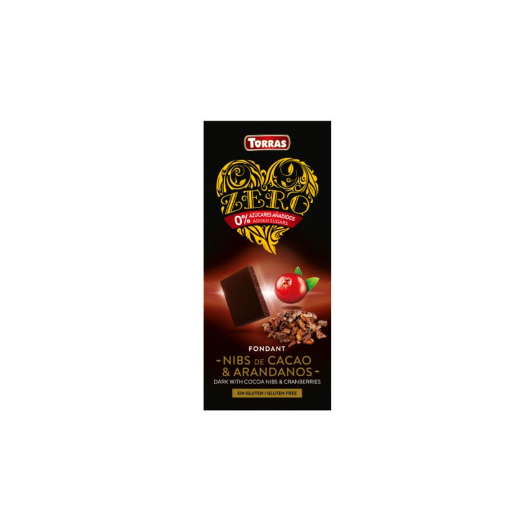 Temna čokolada s sladilom, kakavovimi drobci in brusnicami 125g