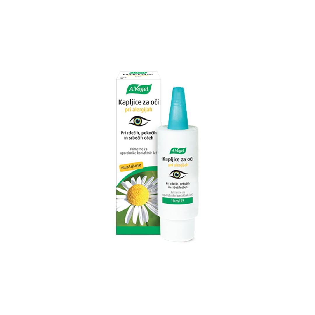 A.Vogel Kapljice za oči pri alergijah vsebujejo hialuronsko kislino (rastlinskega izvora) in se lahko uporabljajo za hitro lajšanje srbečih in pordelih oči, ki so posledica senenega nahoda.