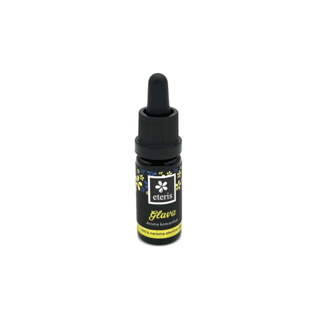 Aroma koncentrat Glava s premišljeno izbranimi eteričnimi olji pomaga izboljšati počutje, kadar vas pesti občutek napetosti v glavi ali glavobol. Uporabili smo eterična olja poprove in zelene mete, evkalipta, bosvelije, muškatne kadulje, melise in zelenke. Svež vonj mešanice bo na naraven način pripomogel k sproščanju napetosti in podprl odpiranje dihalnih poti.
