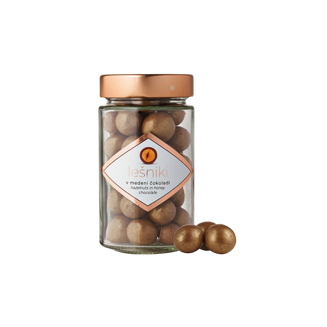 Izjemne ročno izdelane čokoladne kroglice z lešniki smo oblili s slastno medeno čokolado, posuli z zlatim prahom ter jih oblekli v elegantno stekleno darilno embalažo – za drobne trenutke razvajanja na prav poseben način, 125g